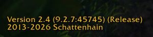 Wir können nur NPCs und ihre IDs von WoW Head verwenden, die auch bis einschließlich unserer Spielversion vorhanden sind! Bis zu welcher Version ihr suchen könnt, ergibt sich aus der Versionsnummer unten links im Einloggbildschirm (Im Bild: 9.2.7). Eine kurze Google Suche "World of Warcraft 9.2.7" sagt euch zur Not zusätzlich, welches WoW Addon das ist!