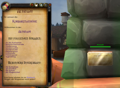 Sobald du deine Maus über ein angebrachtes Schild bewegst, erscheint sofort der entsprechende Straßenname. Das oberste Schild zeigt dir immer das Ziel an, das vom aktuellen Standort aus am nächsten liegt. Je weiter ein Schild unten am Pfahl hängt, desto weiter ist das angegebene Ziel entfernt.